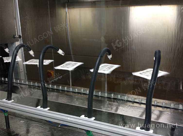 1.上料-手動靜電除塵-素材預熱-自動靜電除塵-自動噴涂-烘烤-冷卻-下料(拆分成三條一涂一烤線) 2.上料-手動除塵-素材預熱-自動除塵-自動噴底-烘烤-自動噴普通面-冷卻-下料(合并成兩涂兩烤) 3.上料-手動除塵-素材預熱-自動除塵-自動噴底-烘烤-自動噴中漆-烘烤-自動噴面-冷卻-下料(合并成三涂三烤) 4.上料-手動靜電除塵-素材預熱-自動靜電除塵-自動噴-IR-UV光固化-冷卻-下料(單獨面漆)