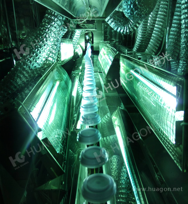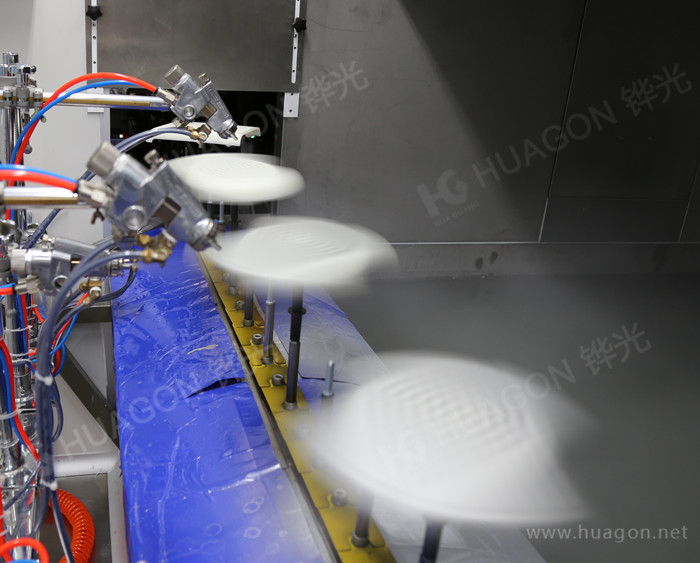上料-手動靜電除塵-素材預熱-自動靜電除塵-自動底水噴涂-預熱-自動噴涂-靜置-IR-UV光固化-冷卻-下料-電鍍